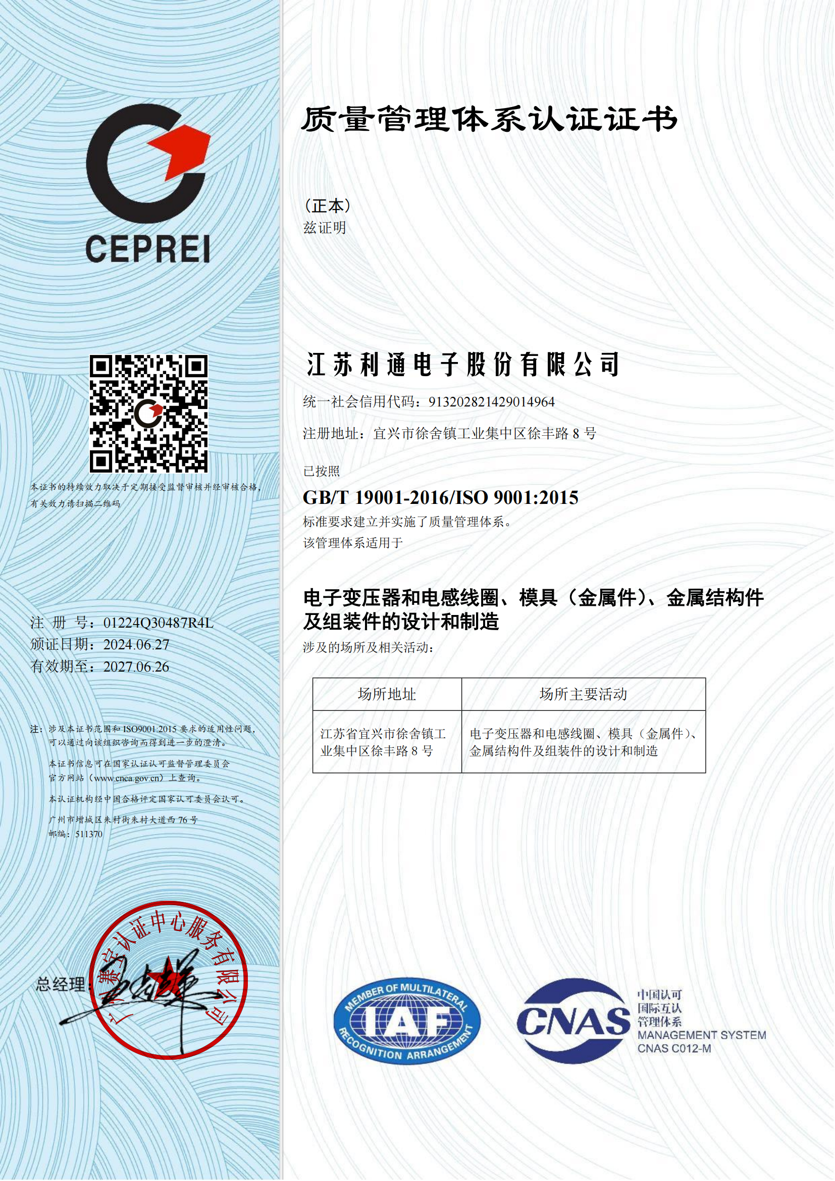 ISO 19001 質(zhì)量管理體系認(rèn)證證書(shū)